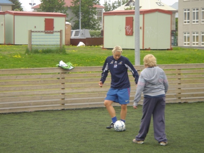 Fyrsta æfing af þremur í Sparkvallarverkefni ÍF og KSÍ fór fram á sparkvellinum við Laugarnesskóla þann 15. júní sl. Sérstakir gestir á æfingunni voru landsliðs- og KR-konurnar Edda Garðarsdóttir og Hólmfríður Magúsdóttir. Léku þær listir sínar með þátttakendum á æfingunni og kenndu þeim ýmislegt í göldrum knattspyrnunnar enda engir aukvisar á þar á ferð. Þótti æfingin takast vel og vakti almenna ánægju meðal þátttakenda.